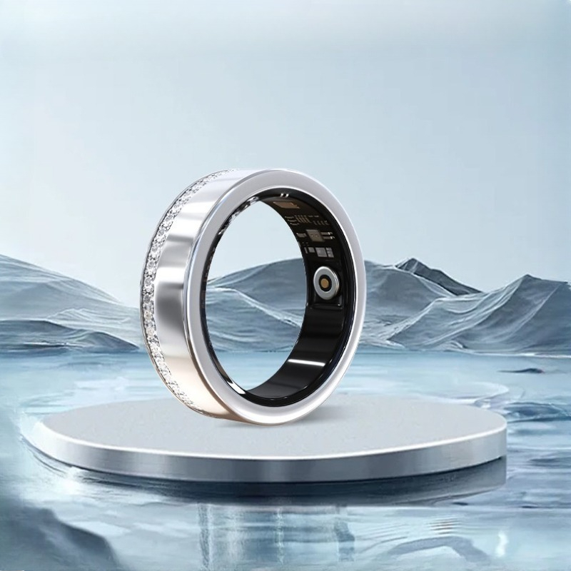 PANGUMART V2 Diamond-encrusted Bluetooth Sleep Heart Rate Monitoring Titanium Steel Smart Ring