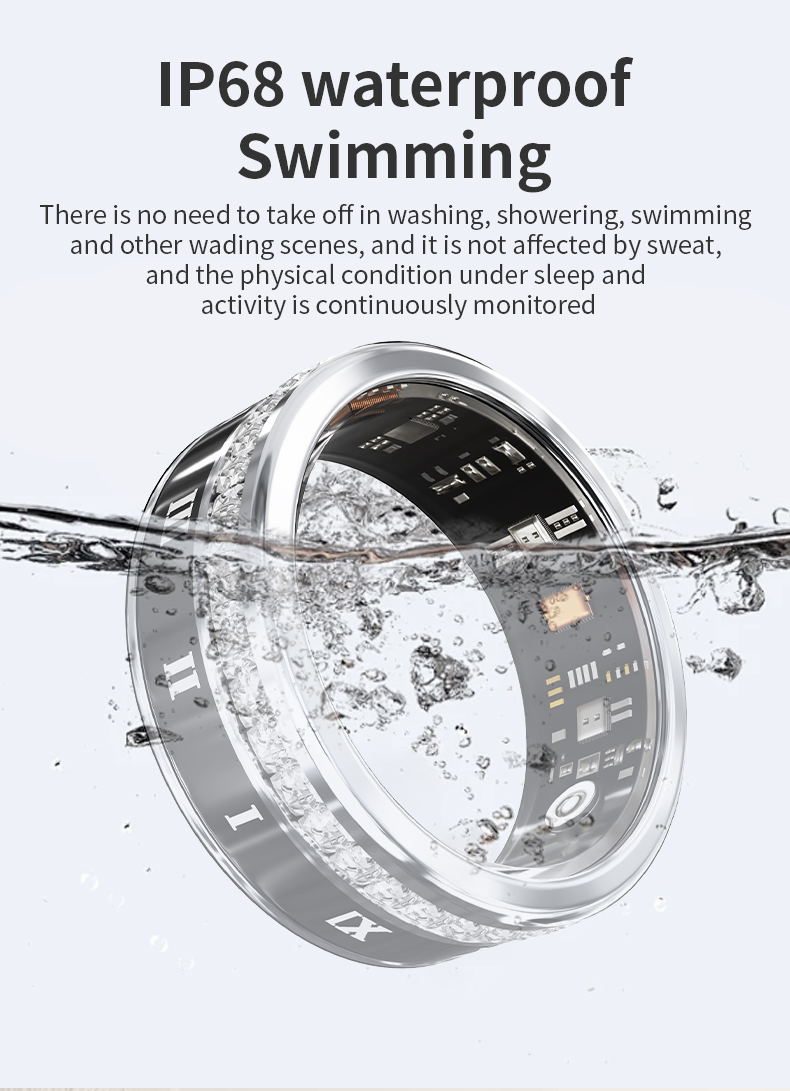 PANGUMART V2 Diamond-encrusted Bluetooth Sleep Heart Rate Monitoring Titanium Steel Smart Ring